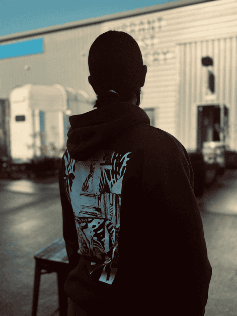 Hight quality fruit of the loom black pull over hoodie printed with large design on back & name on front chest.