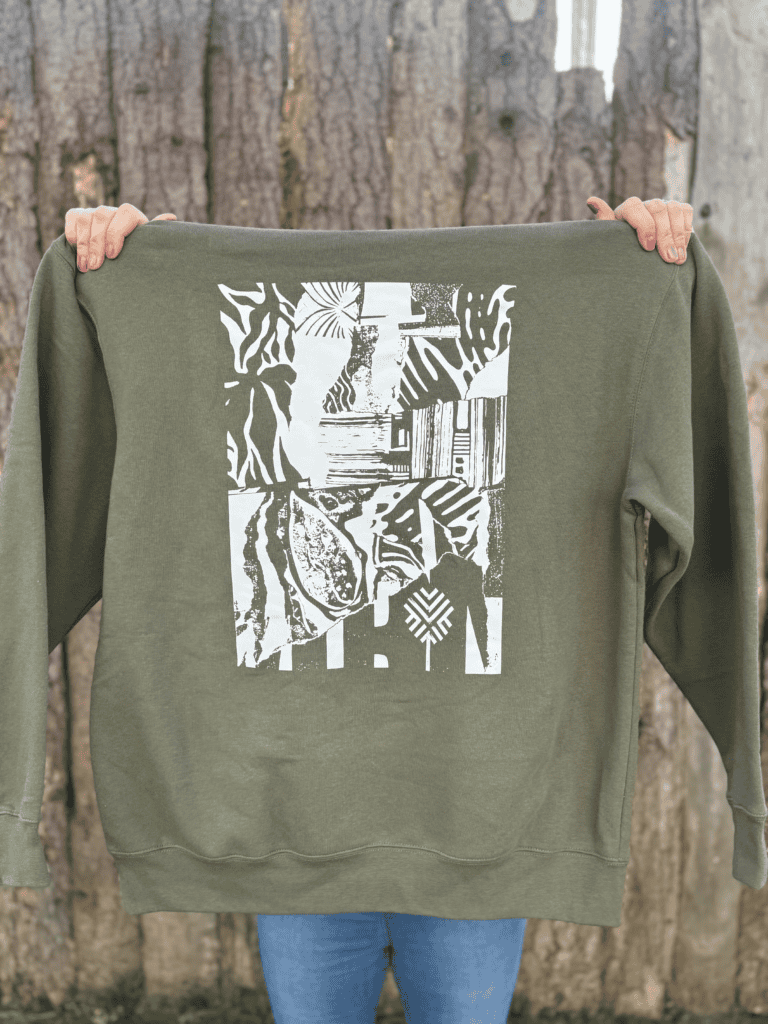 Hight quality fruit of the loom olive pull over hoodie printed with large design on back & name on front chest.